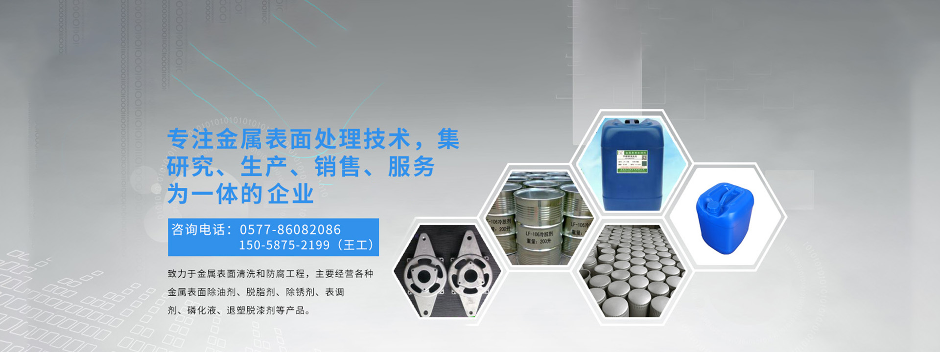 溫州龍飛環??萍加邢薰?/span>致力于金屬表面清洗和防腐工程,主要經營各種金屬表面除油劑、脫脂劑、除銹劑、表調劑、磷化液、退塑脫漆劑、除蠟水、防銹水防銹油、封閉劑、鈍化劑、發黑劑、著色劑、化學拋光劑、合成乳化劑、水處理劑等金屬表面處理劑
